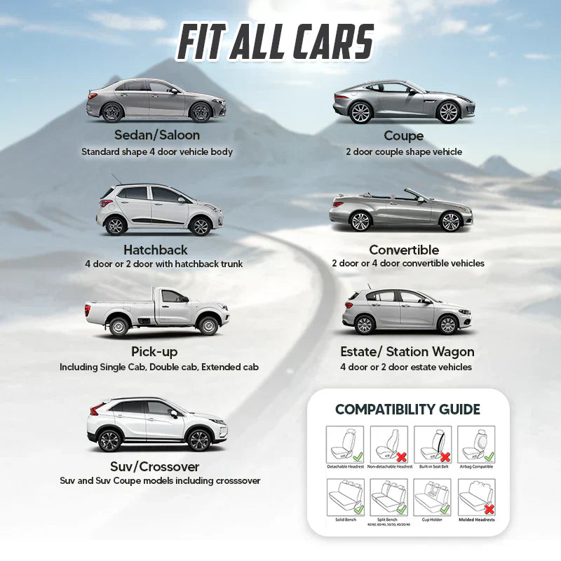 Our seat covers are designed to fit most vehicles including cars, trucks, sedan, vans and SUVs. Rear seat cover designed to accommodate 50/50, 40/60, 60/40, and 40/20/40 split benches.